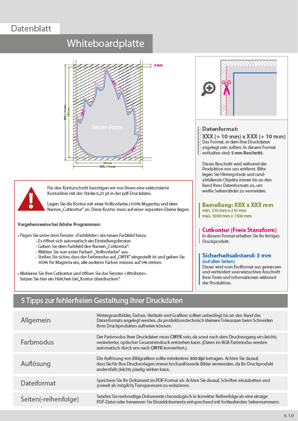 Whiteboardplatte in Feuer-Form konturgefräst unbedruckt