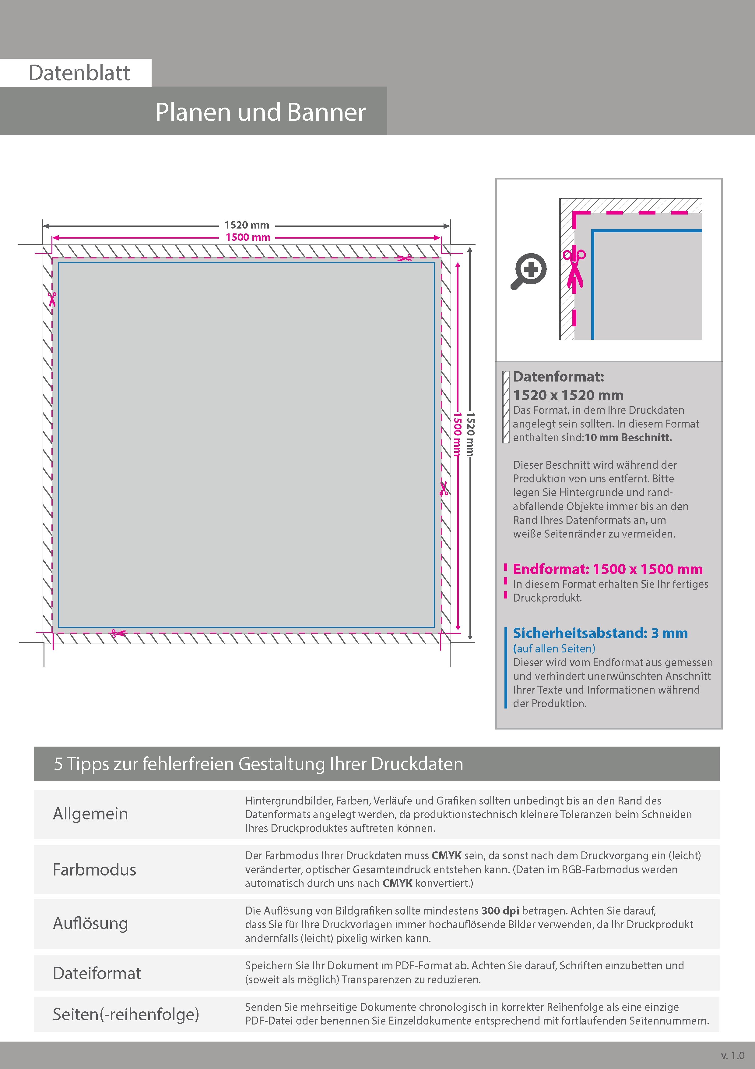 Hochwertige Stoff-Banner 150 x 150 cm, 4/0-farbig bedruckt, inkl. Karabiner