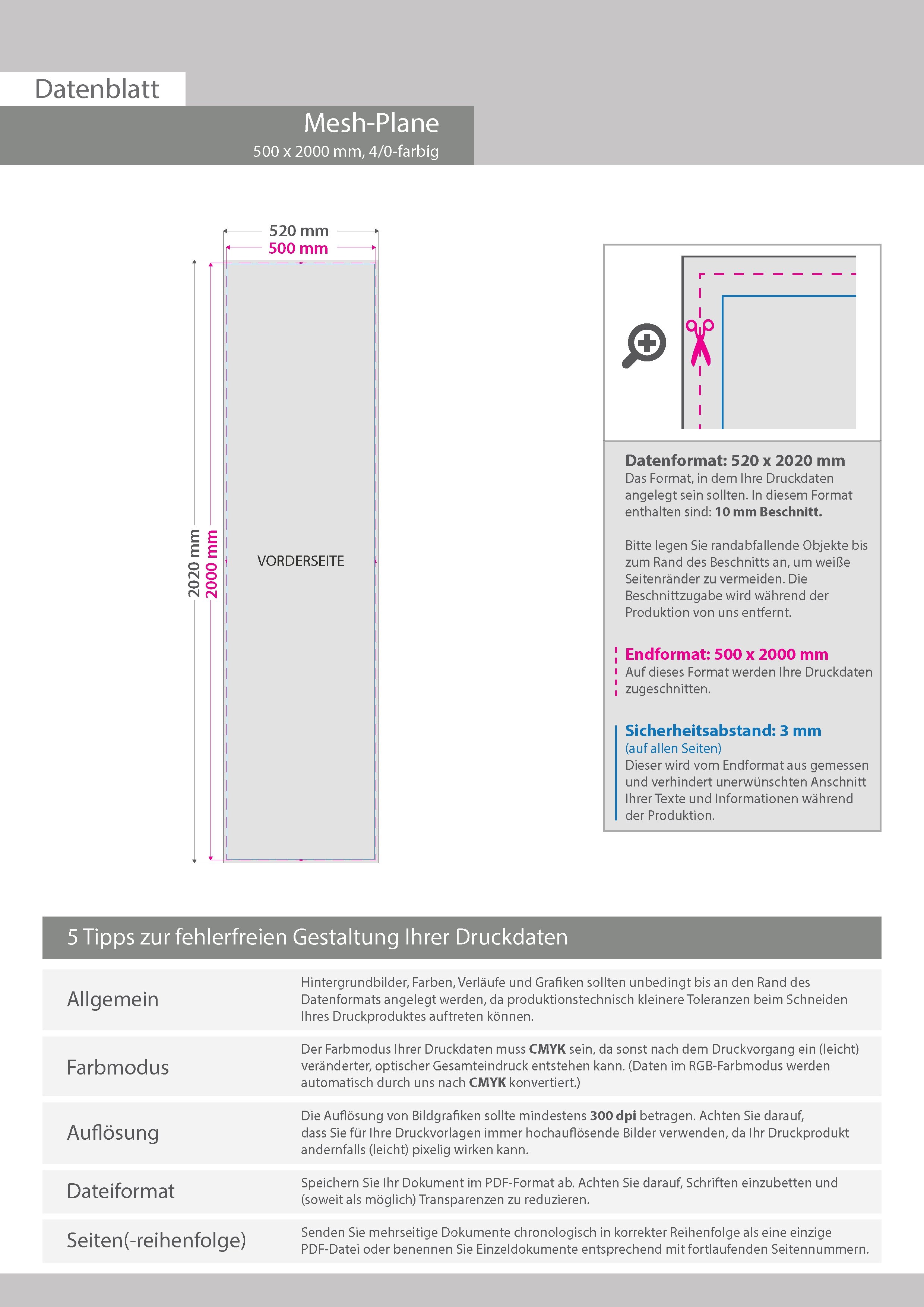 Hochwertige Mesh-Plane (PVC-frei), 50 x 200 cm, 4/0-farbig bedruckt, Hohlsaum links und rechts (Durchmesser Hohlsaum 6,0 cm)