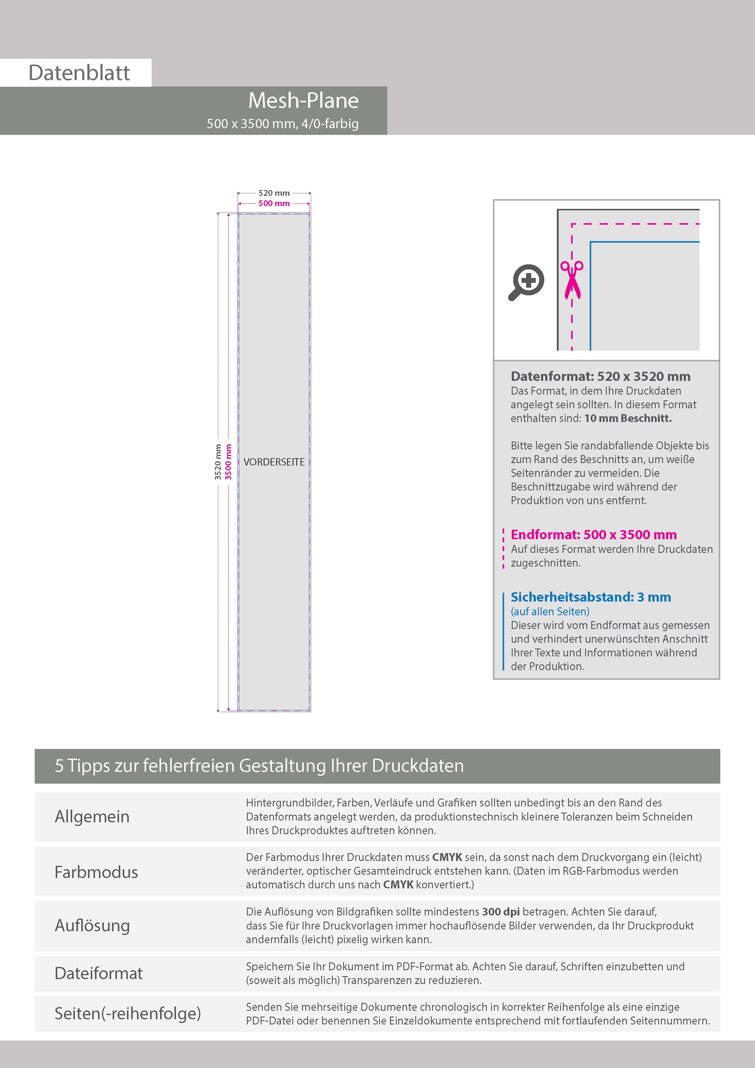 Hochwertige Mesh-Plane (PVC-frei), 50 x 350 cm, 4/0-farbig bedruckt, Hohlsaum links und rechts (Durchmesser Hohlsaum 6,0 cm)