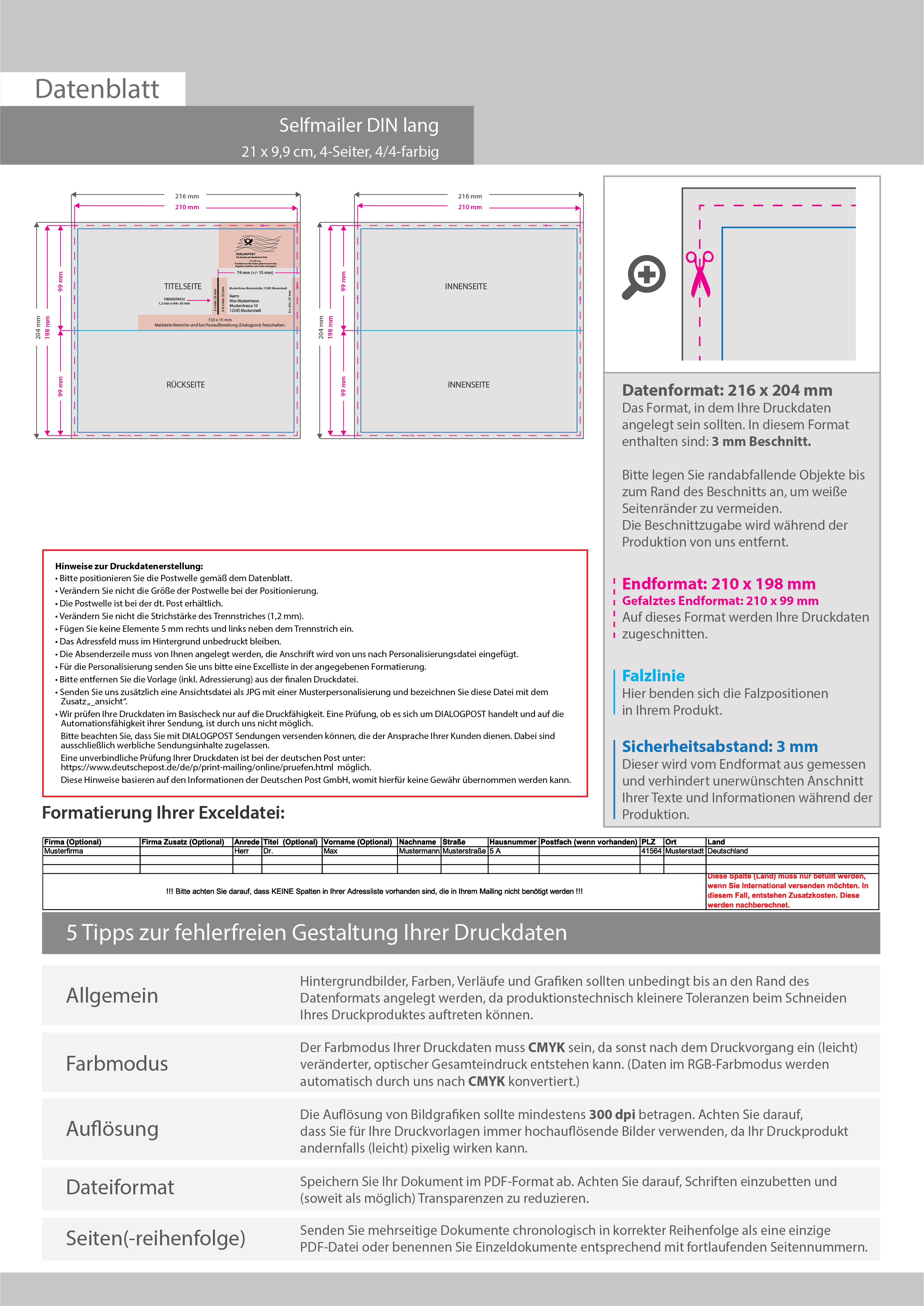 Selfmailer, gefalzt auf DIN lang (21,0 x 9,9 cm), 4-seiter