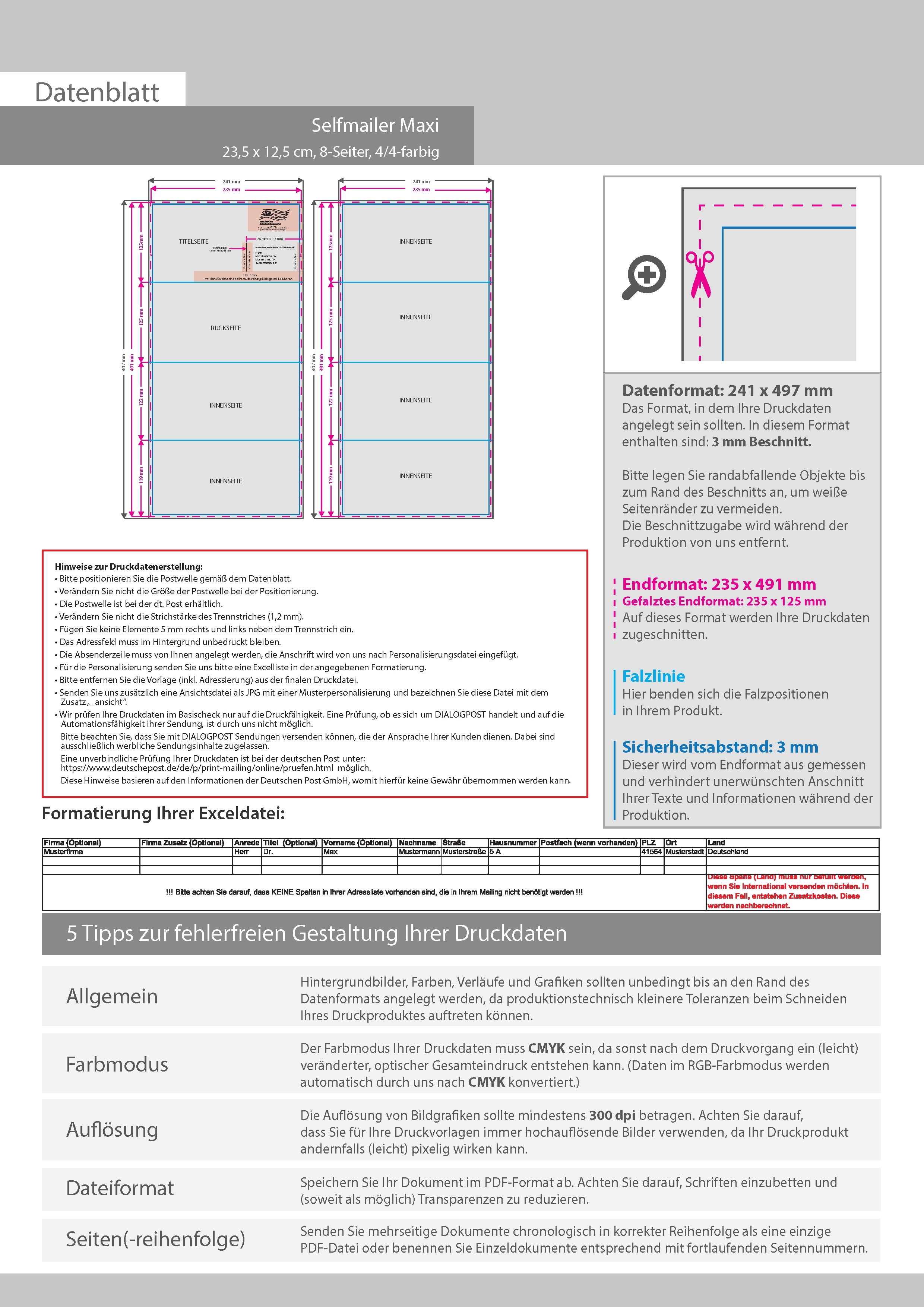 Selfmailer, gefalzt auf MAXI-Format (23,5 x 12,5 cm), 8-seiter