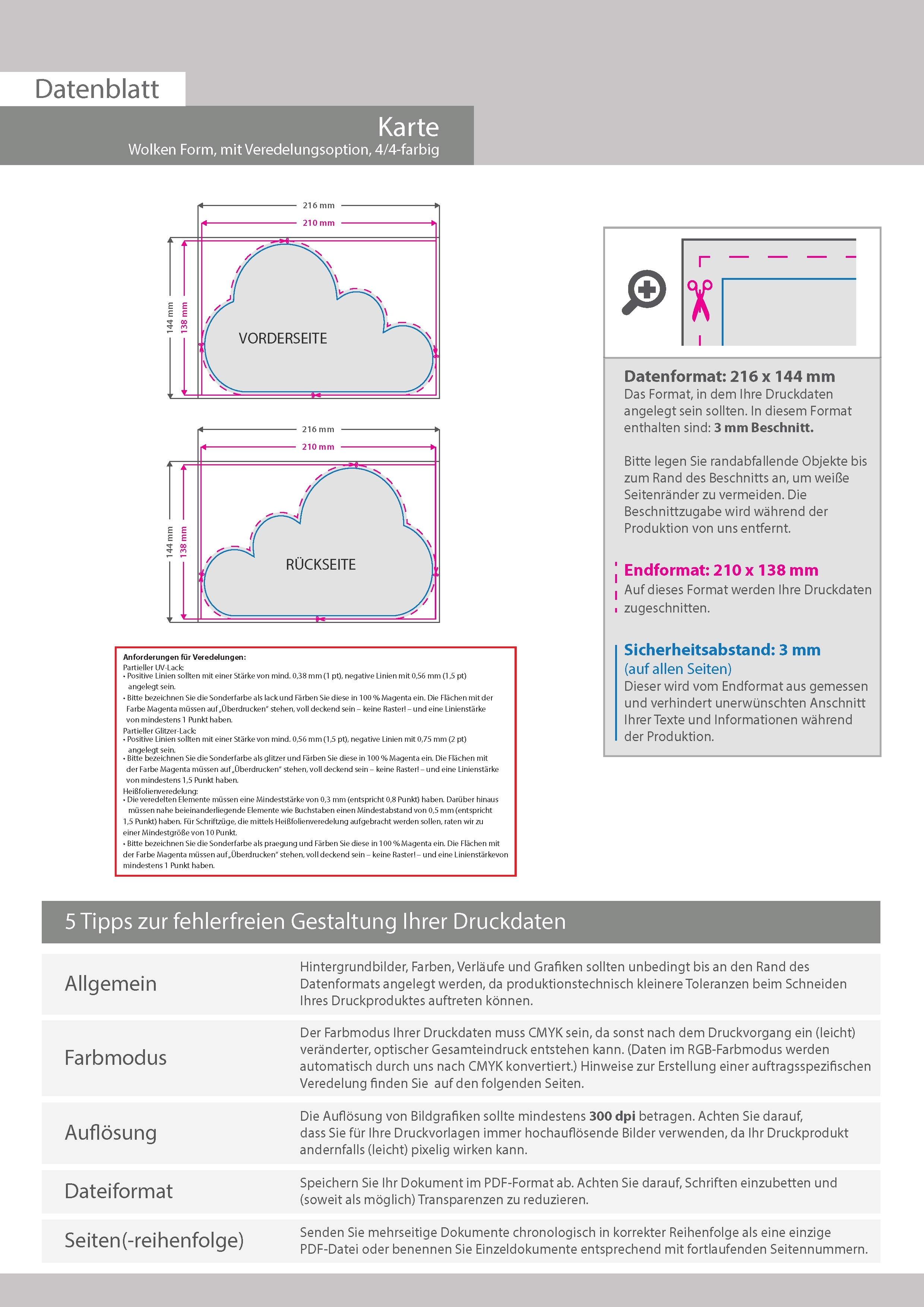 Weihnachtskarten Stanzform Wolke mit partieller UV-Lack-Veredelung