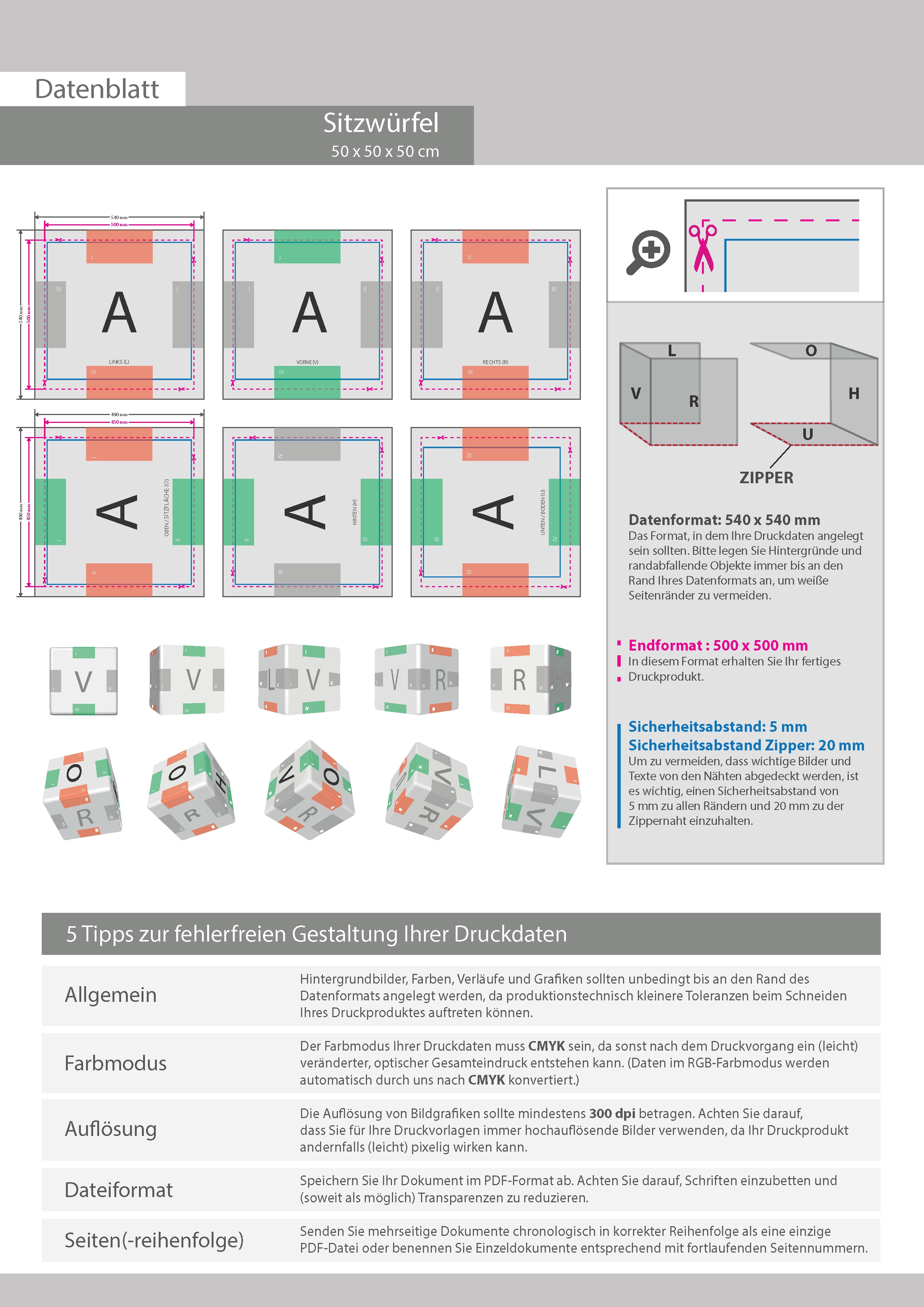 Hochwertiger Outdoor Sitzwürfel Cube 50, komplett vollflächig 4-farbig bedruckt