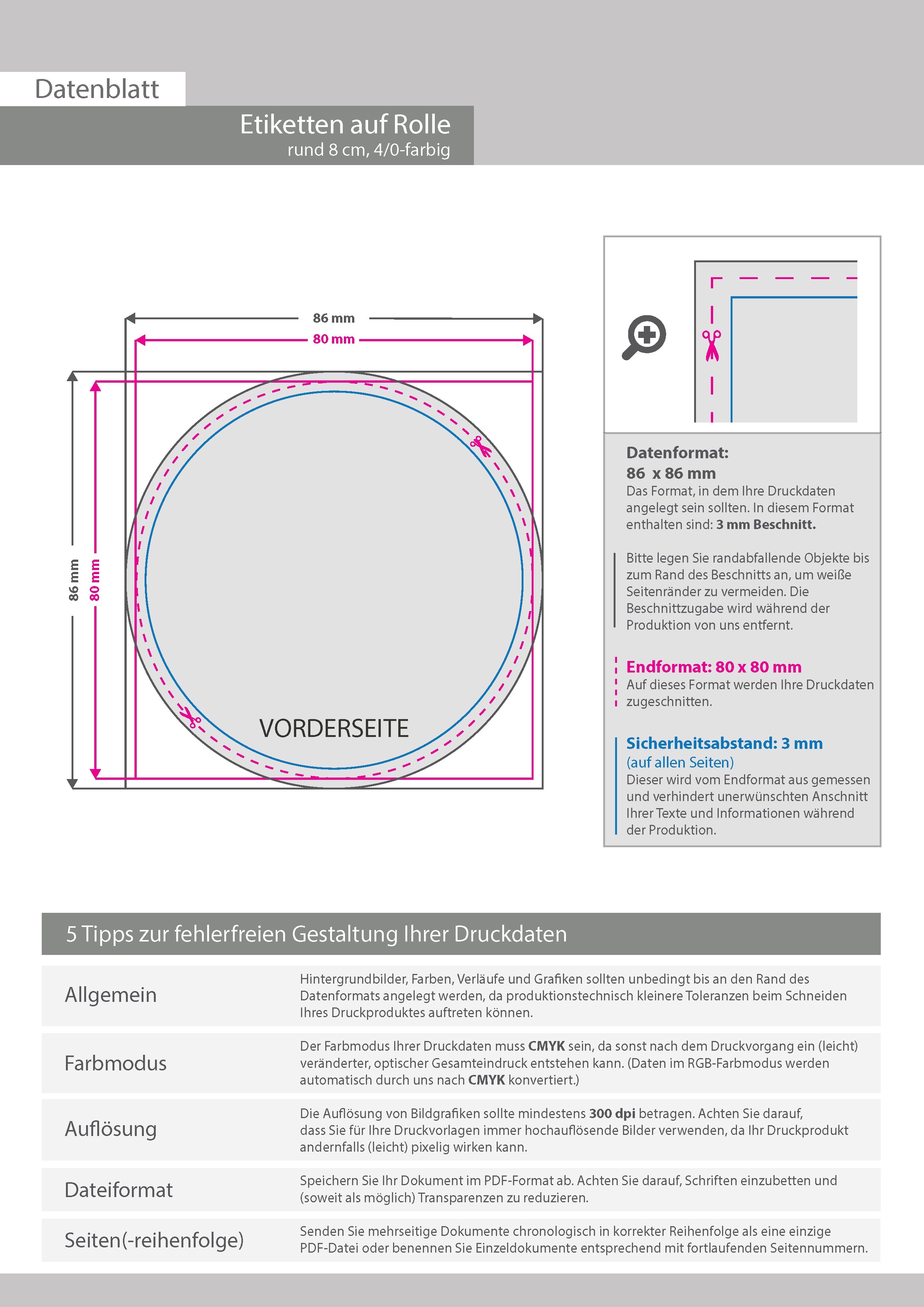 Hochwertige Etiketten auf Rolle rund (8 cm)